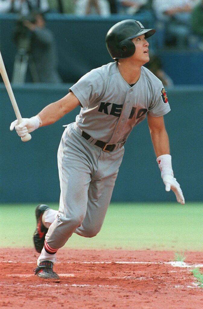 慶應義塾大学野球部では1年生春からレギュラーに定着し、1試合3本塁打を放つなど華々しいデビューを飾った。3年春には打率.512、5本塁打、18打点で東京六大学リーグの三冠王となり、戦後8人目の快挙として話題になる。